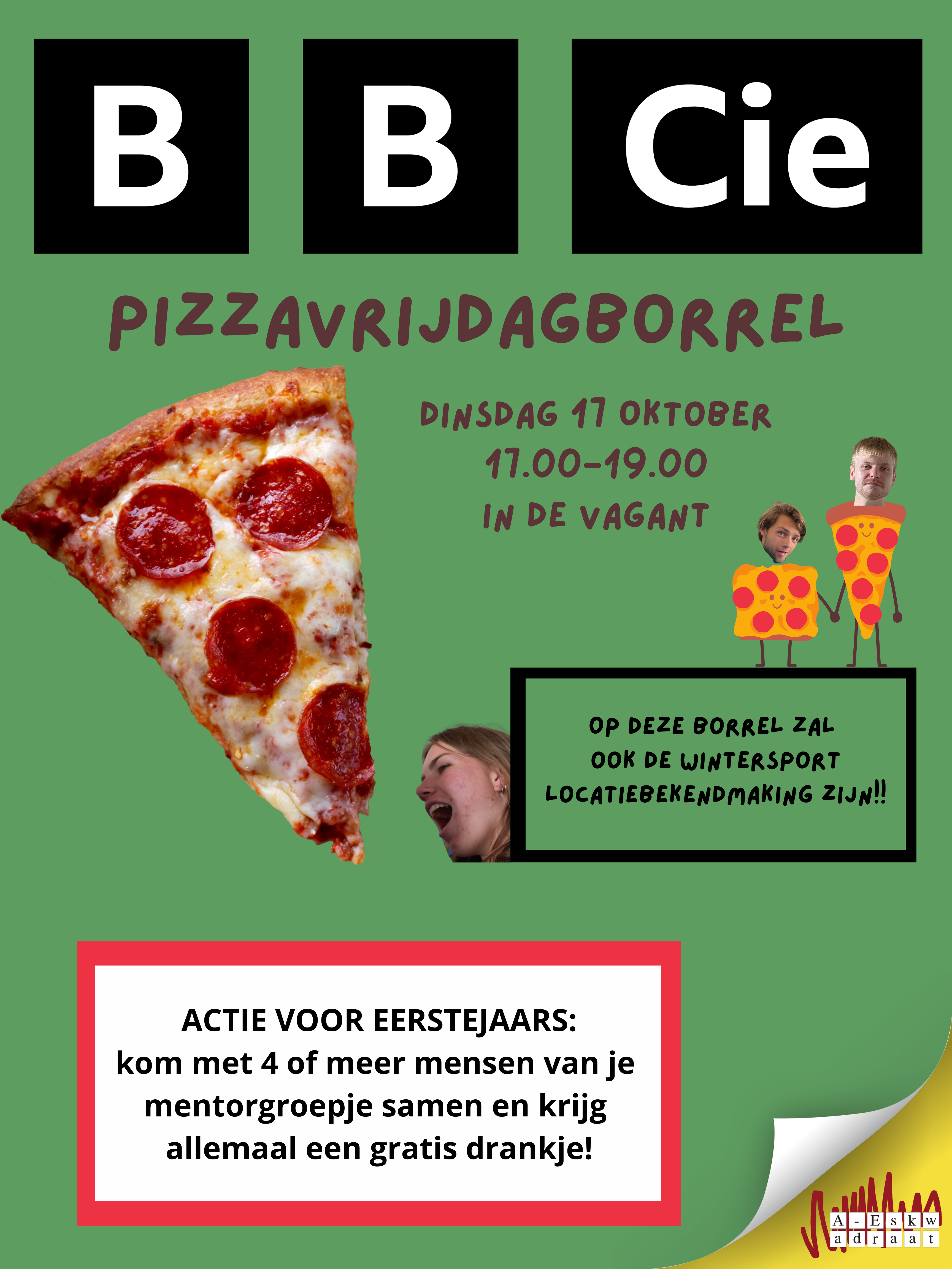 Come have a drink in the Vagant next Tuesday! It may not be Friday, but at drinks it is pizza Friday. In addition, there is a nice action for first-year students: if you come with at least 4 people from your mentor group, everyone will receive a free drink! The location announcement of the winter sports will also take place. Enough reasons to be there. See you then!