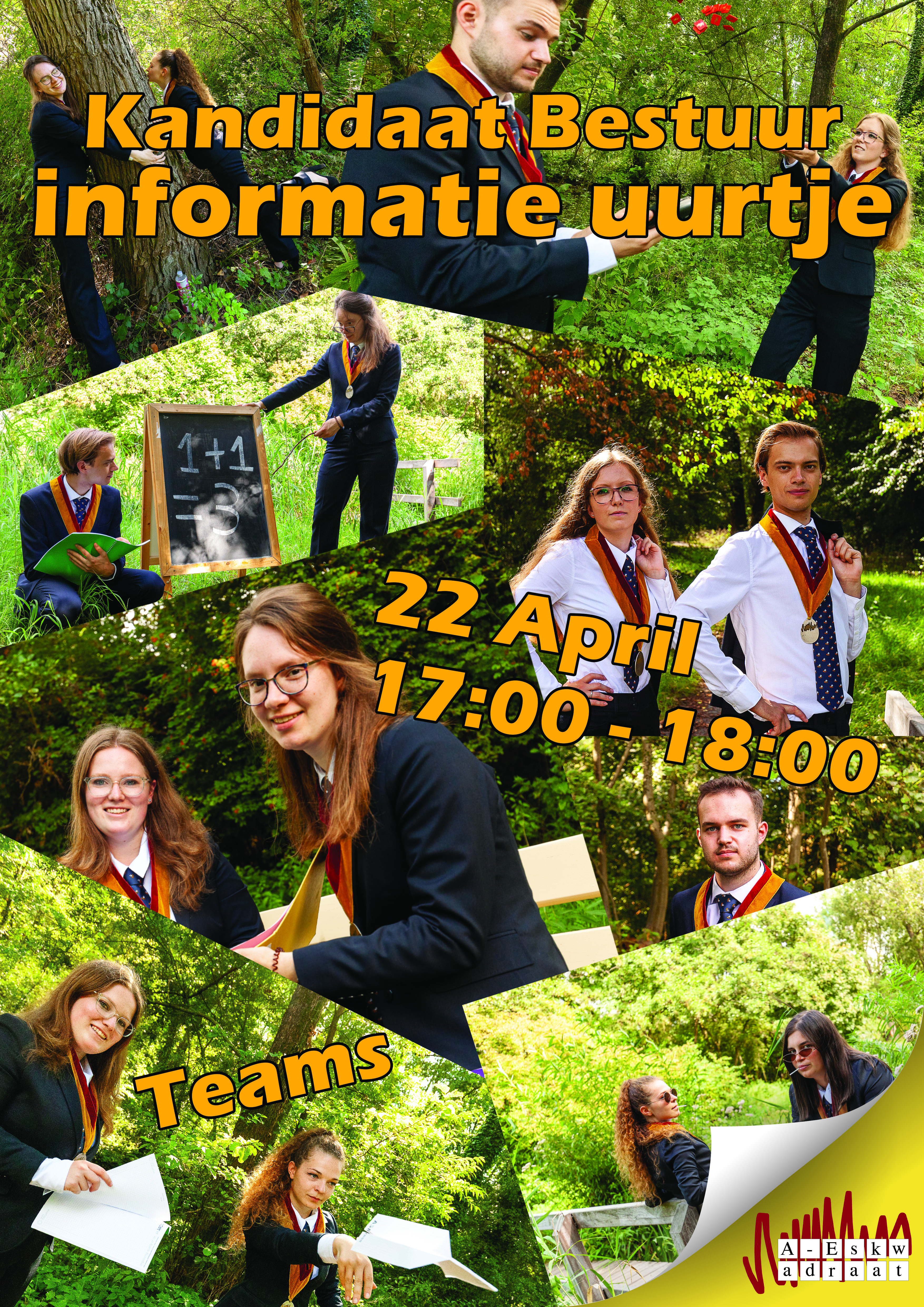 Do you want to know what the board does on an average day, or do you want to know what you can learn en expect during a board year? Join us digitally during the board information hour, where multiple (former) board members share their experience, and where there is enough time to ask any questions you want! Hopefully we see you there!