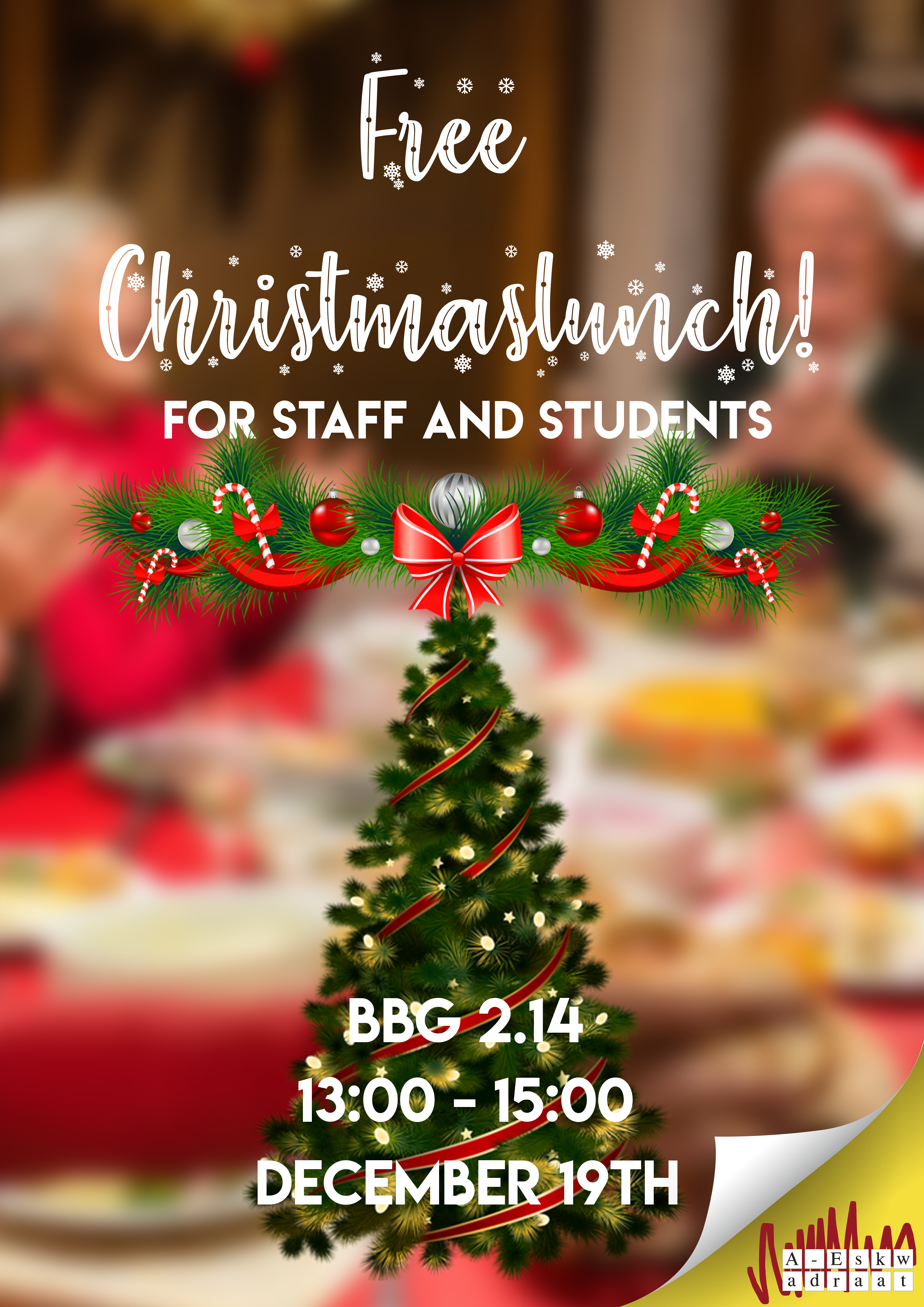 Jaja, het is weer zover. 19 december is er een gratis kerstlunch voor zowel medewerkers als studenten, keigezel dus!