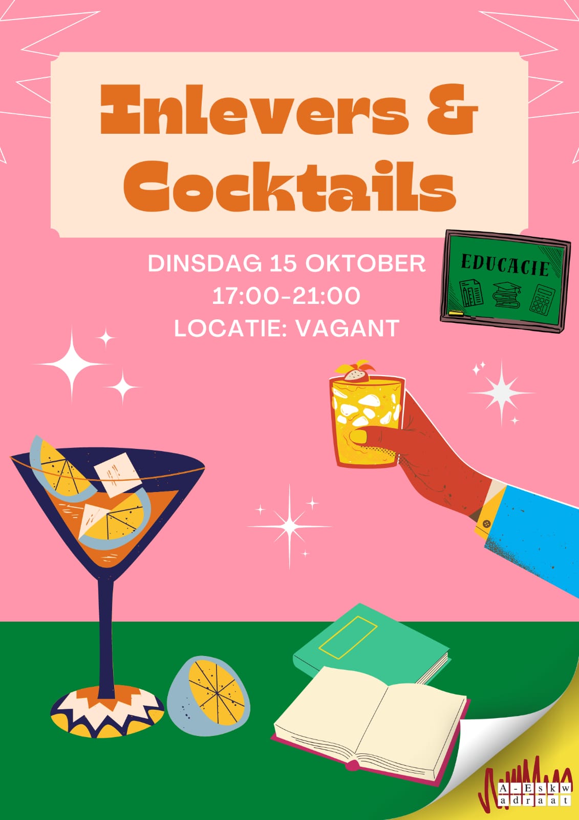 Hi everyone! Do you like fun and drinks, but do you sometimes have to make time for your studies? Do you often have to miss an activity because you have to fight hard for your deadlines? We have the solution; Hand-ins & Cocktails. While enjoying delicious cocktails, we will all work on submitting our courses. 2 birds with 1 stone! Together you will get one step further in your deadline and have a pleasant evening! This way you will never be stressed again!