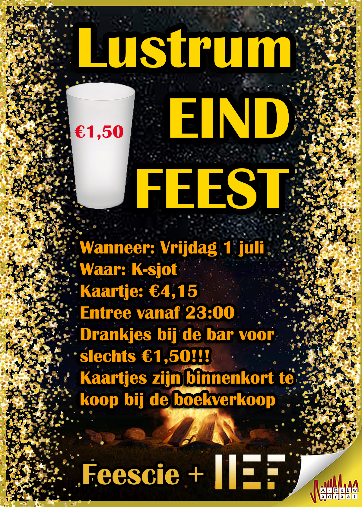 It is almost the end of the college year and we are celebrating this with the Lustrum Ending Party! Together with the Hef the party will be held in K-Sjot Utrecht on 1 july. Come enjoy the party with awesome music and drinks for only 1.50 euro a piecie! You can buy your tickets soon for 4.50 euro. 18+!!