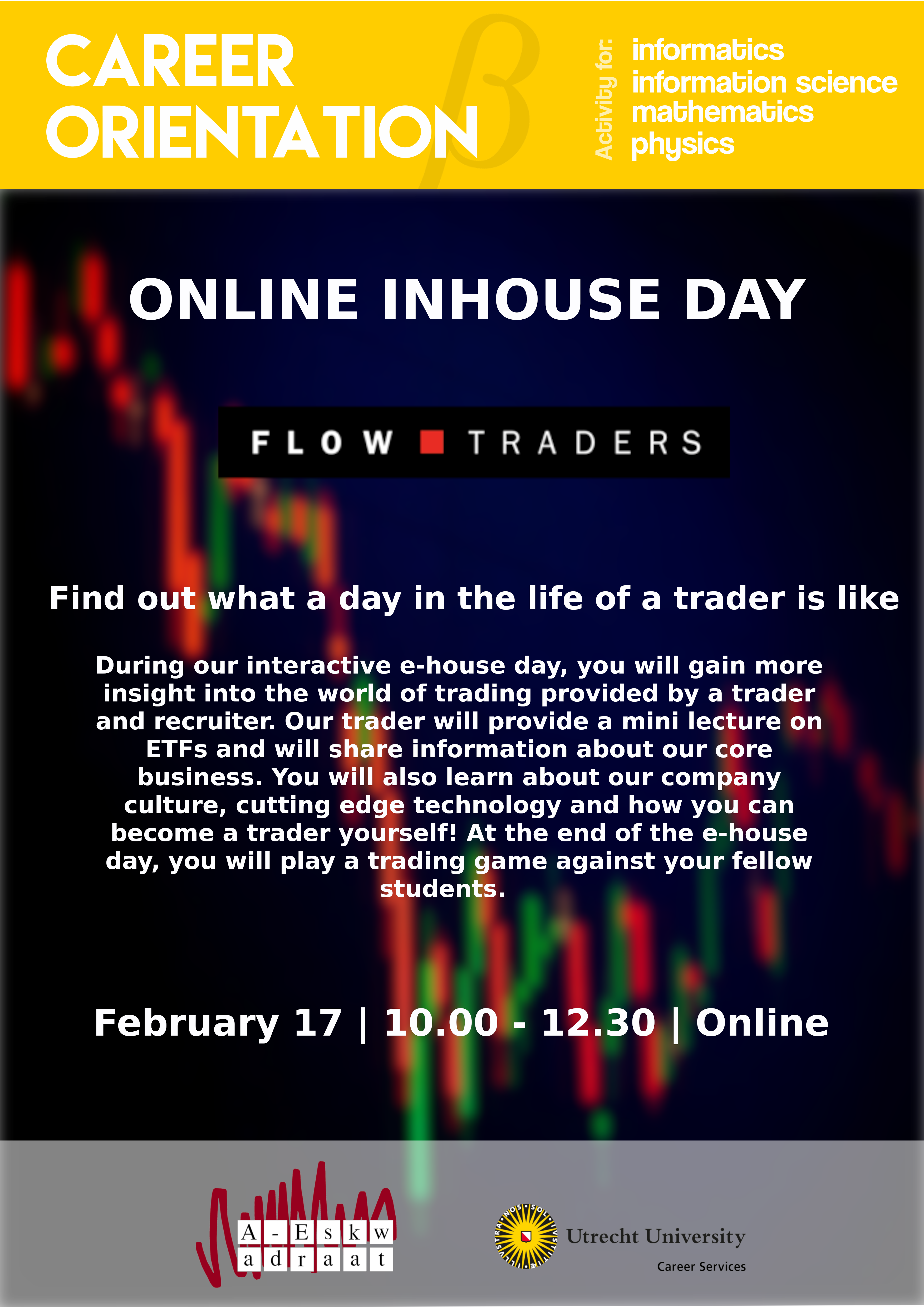 During our interactive online in-house day, you will gain more insight into the world of trading provided by a Trader and Recruiter. This is your chance to ask all of your questions and to find out what a day in the life of a Trader is like. Our Trader will provide a mini lecture on ETFs and will share information about our core-business with you. You will also learn about our company culture, cutting edge technology and how you can become a Trader yourself!