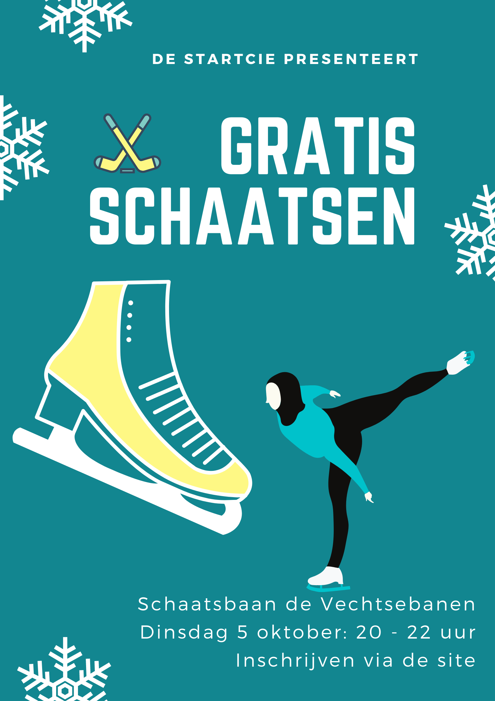Het is misschien nog niet heel koud, maar je kunt al wel schaatsen! Of je nou met een stoel moet schaatsen of de nieuwe Sven Kramer bent, ijspret voor iedereen! Je kunt onder een dak of onder de sterrenhemel schaatsen. Mocht je geen schaatsen hebben, kun je daar met borg schaatsen huren. De schaatsbaan is gereserveerd van 20.15-21.30. Daarna kun je op locatie nog gezellig naborrelen.