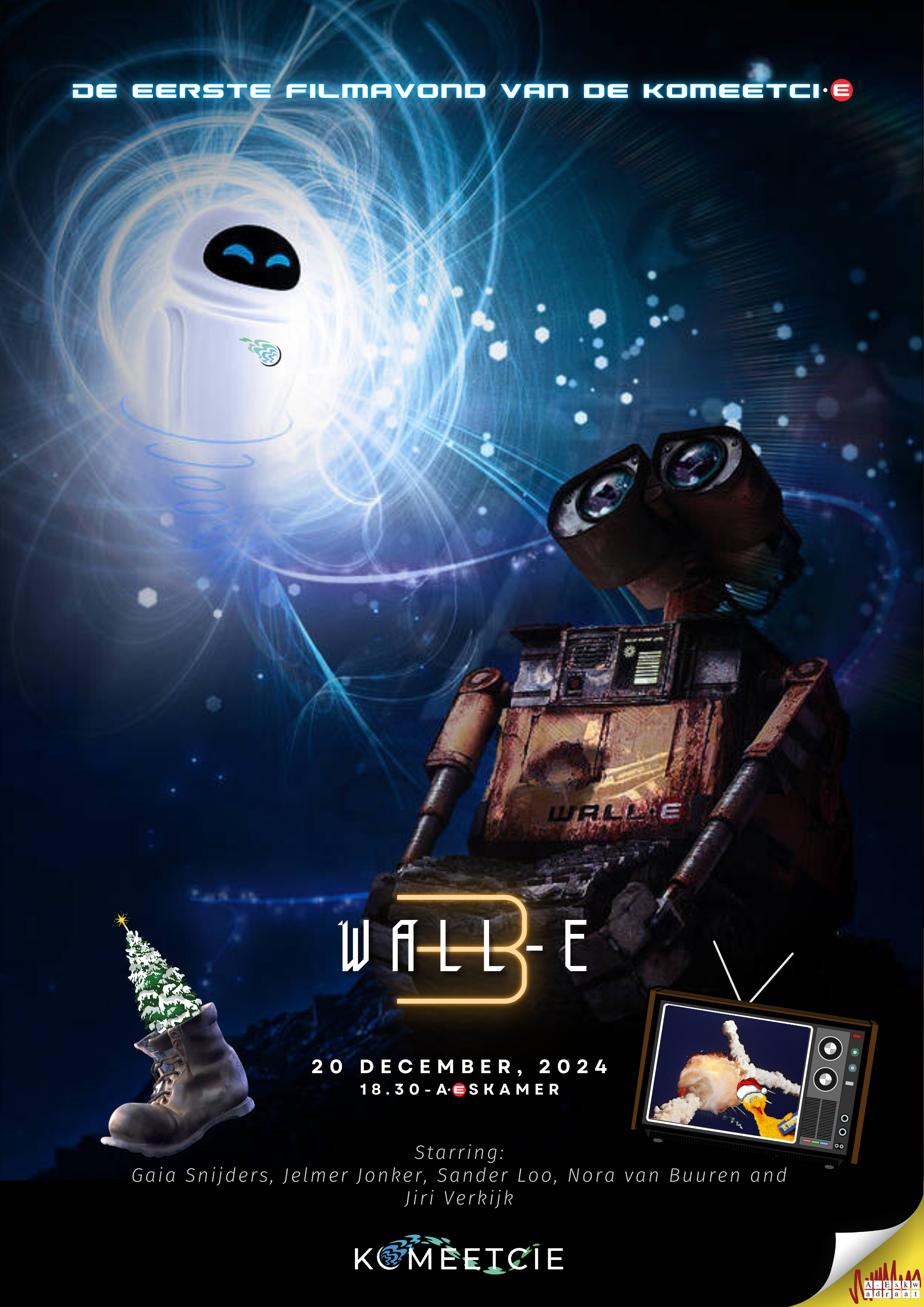 Christmas is almost here! But wait! Before you say goodbye to your fellow students, there is the chance to watch the blockbuster Wall-E in the A-Eskwadraat room on Friday, December 20.