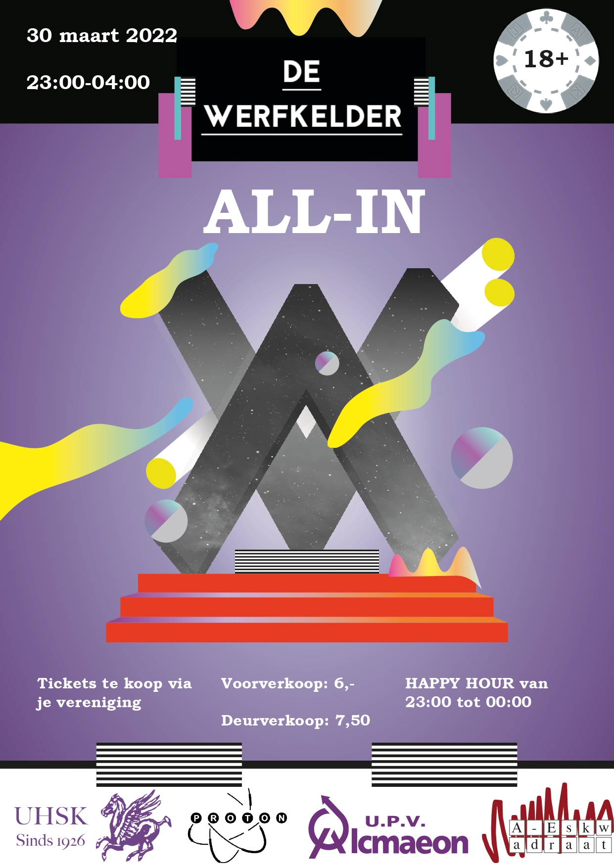 After the unfortunate cancellation of the party on its original date, we hope to see you on March 30th! It will be in the Werfkelder. The party is now for members of Alcmaeon, A-Eskwadraat, Proton and UHSK.