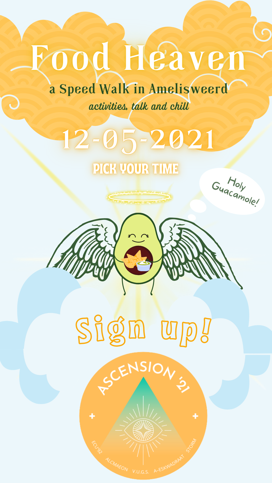 Dit jaar is het dan eindelijk weer zover - het is tijd voor Ascension! Maar wel iets anders dan dat je van ons gewend bent: we hebben namelijk een toffe wandeling door de Amelisweerd voor je klaarstaan, met smakelijke spelletjes onderweg! Dus heb je zin om weer achter je scherm weg te kruipen en nieuwe mensen te ontmoeten? Schrijf je dan in via deze Form: https://forms.gle/vcrXdYsk63Ntebcg9