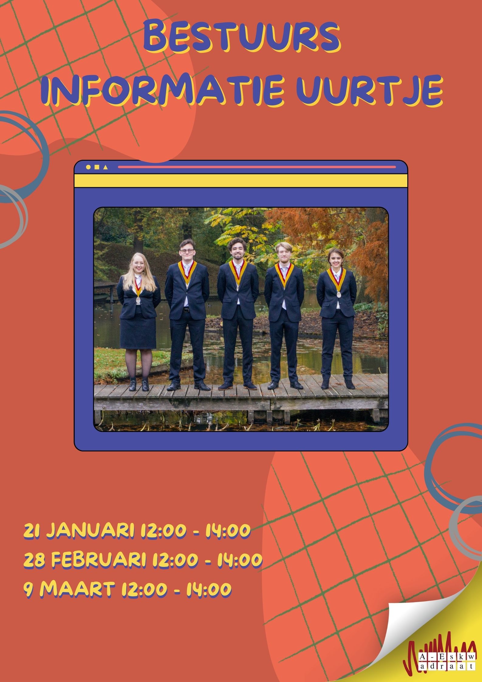 Then come to the board information hour. We will explain what a board year exactly entails and why it is so much fun. Furthermore, we will try to answer all your questions as well as possible.