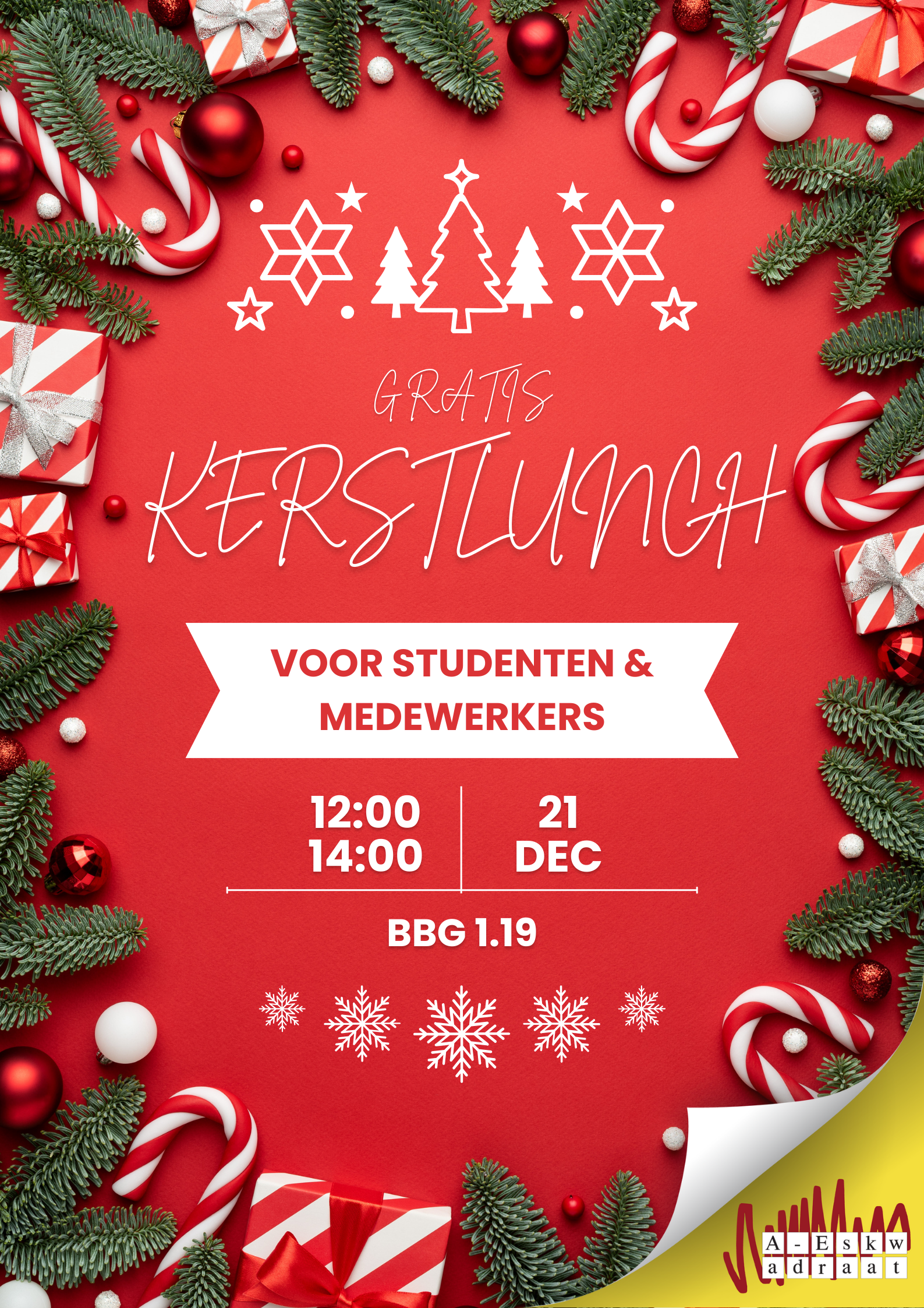 Jaja de tijd is gekomen, A–Es organiseert dit jaar weer een GRATIS kerstlunch voor zowel medewerkers als studenten!!
