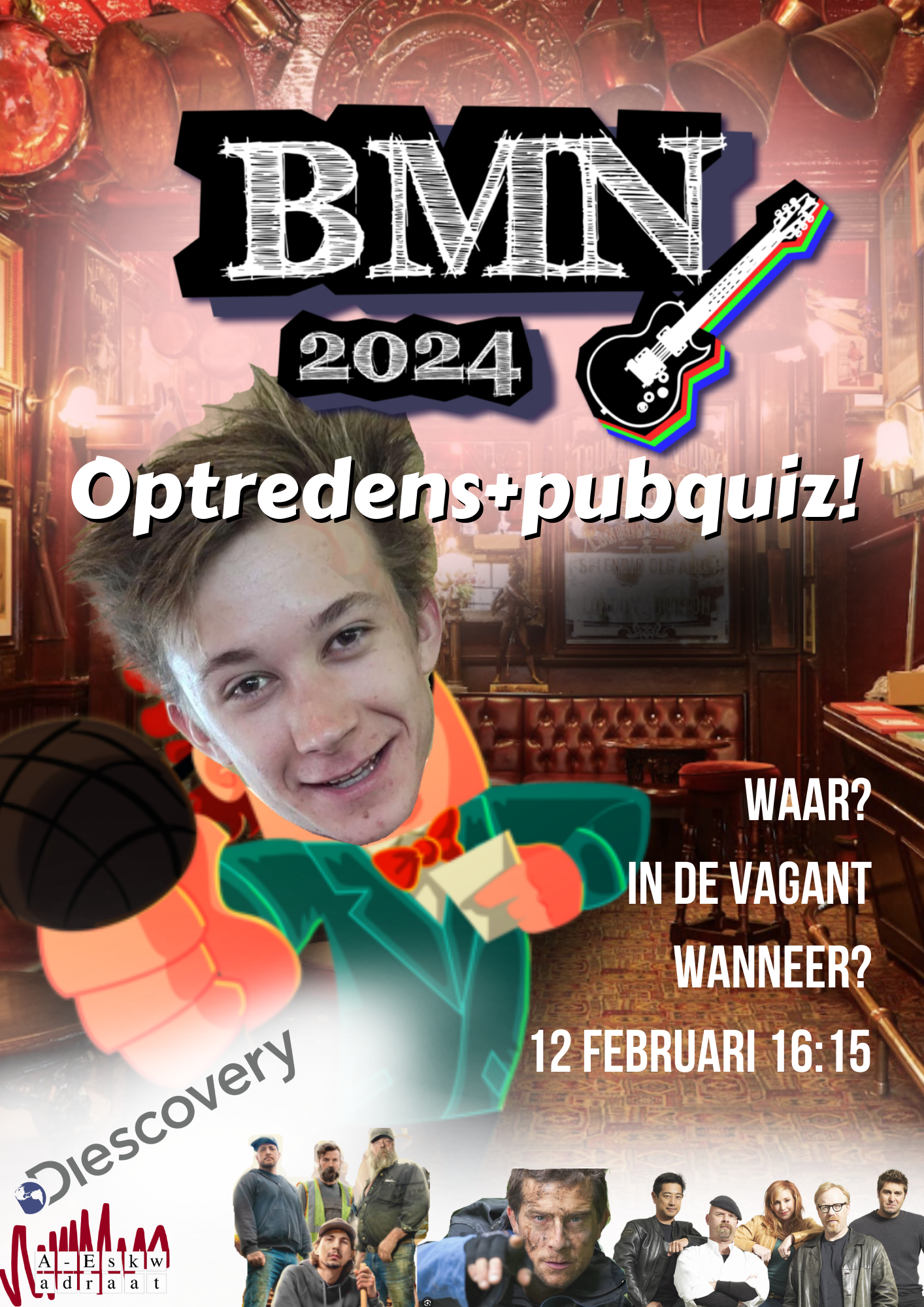 hi, we're the bmn. this year for the dies we organise a pubquiz and naturally the theme is music. this isn't your simple questions/answers quiz. there's sensation! thrill! dies(cover)y! prizes!