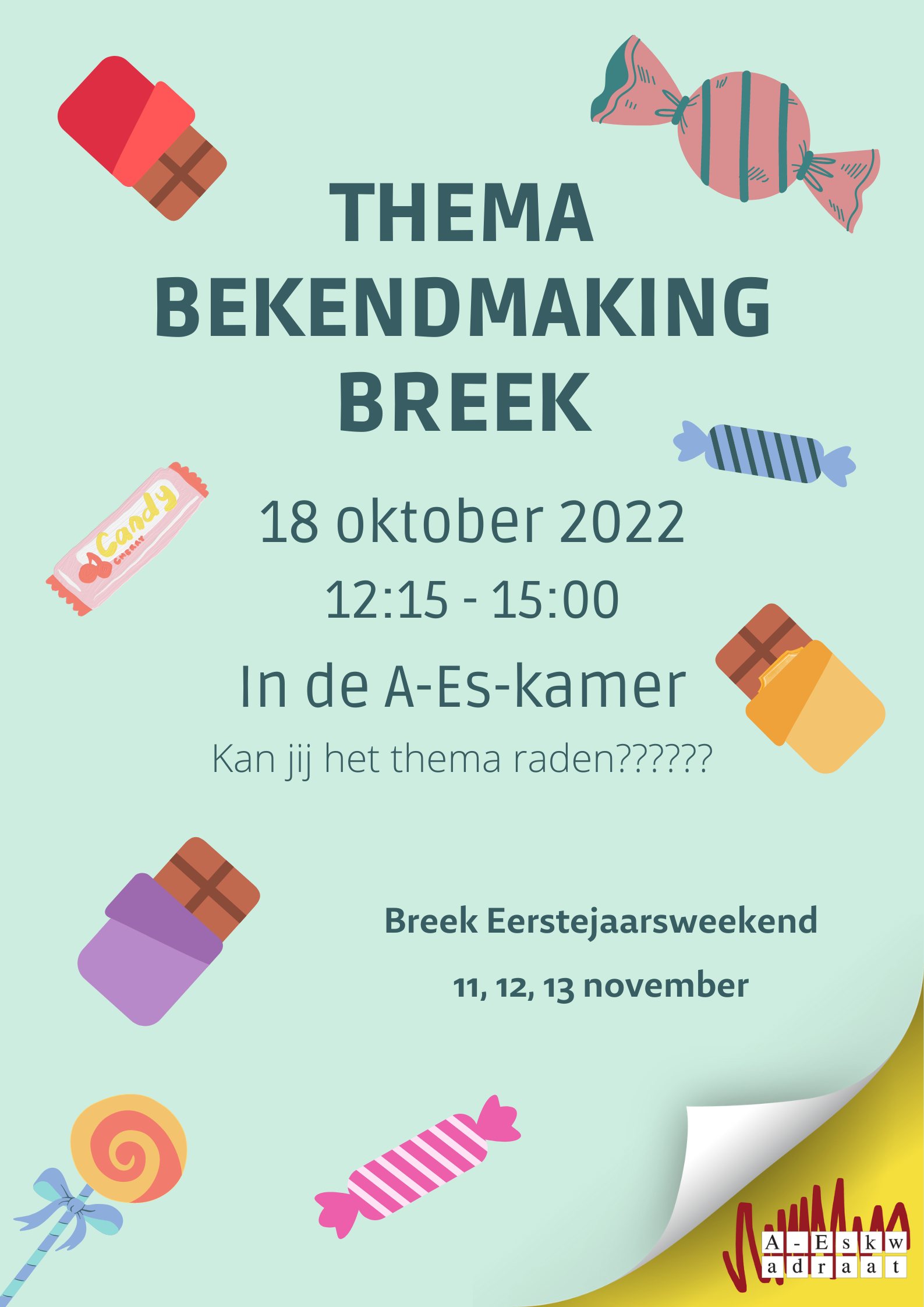Om 13:00 precies op dinsdag 18 oktober wordt het thema bekendgemaakt van de superleuke ultragave breek. Er zijn snoepjes en er is chocolade! Kan jij het thema raden????? Kom vooral langs!!