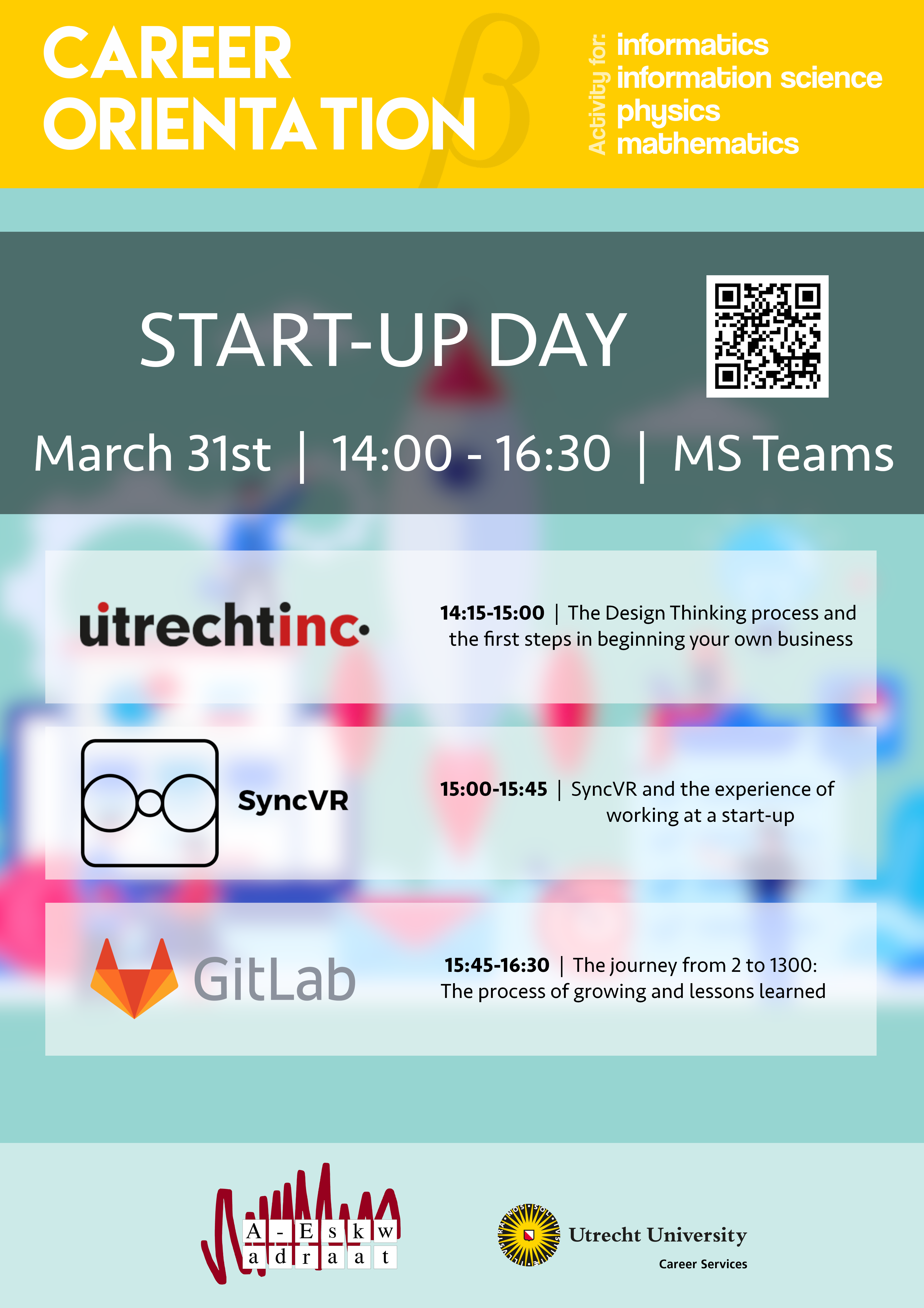 During this day, three companies will give a small talk on the subject of entrepreneurship and startups. It will take place in the Career Orientation MS Teams (a-es2.nl/careerorientationteams)
