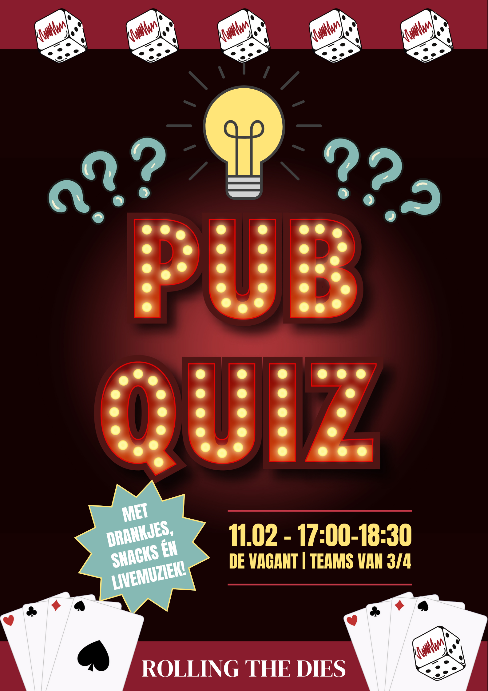 Weet jij alles over gokspellen? En kun je meepraten over sterrenbeelden? Ken jij alle nummers uit 1971? Laat zien dat jij de slimste bent tijdens deze pubquiz! Ook zal de BMN-commissie de quiz naar een hoger niveau tillen met live muziek tijdens de muziek ronde!