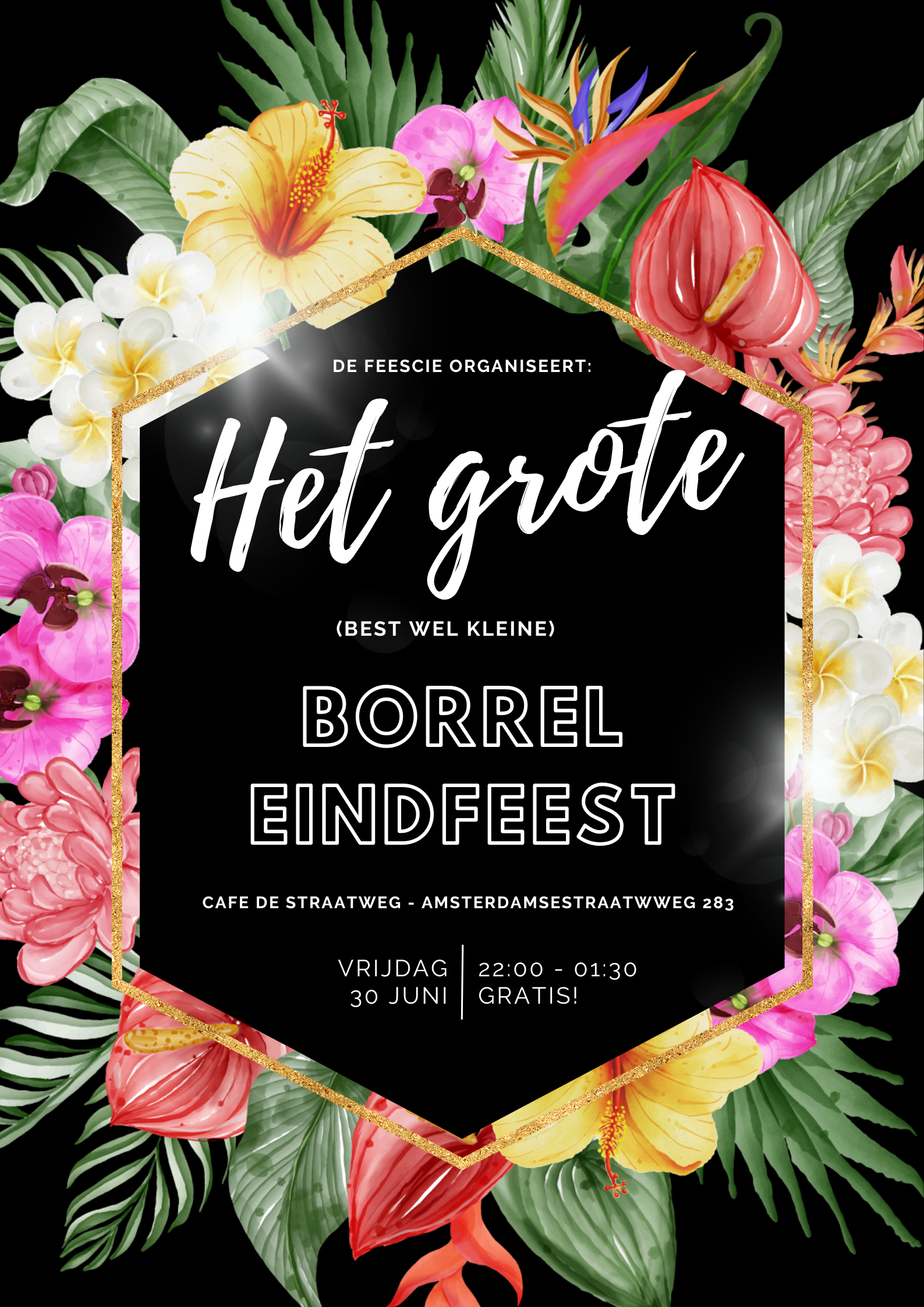 Yippy yay, the study year is over and the summer can start! We have to celebrate that, with the BIG (kind of small) DRINKS END PARTY! Friday 30 June, after the barbecue, you can keep on partying at Cafe de Straatweg. Dance with your friends one last time before you have to miss them for a summer, and start the holiday right! Entrance is free :)