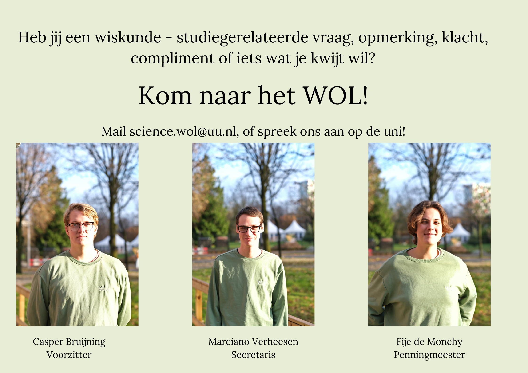 Wol Wil 't Weten! Het volgende WWW'tje is op 19 januari in de pauze, dus van 12.45 tot 13.15. Het onderwerp van dit WWW'tje is: wat maakt een goed werkcollege en een goede TA? Het departement wil graag hierover van studenten horen, om te kijken of ze TA's beter kunnen voorbereiden op het werk. Mocht je ergens anders mee zitten, dan ben je natuurlijk ook hartstikke welkom! Zoals altijd zijn er koekjes :)